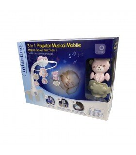 Carrusel 3 en 1 que les acompañará cada noche. Se adapta a distintas edades con sus tres posiciones: como carrusel, como luz de cuna calmante y como lámpara de noche. Proyecta estrellas de colores que iluminarán su habitación y le ayudarán a conciliar el sueño. Cuenta con un espejo para que pueda verse reflejado y varias melodías relajantes que durarán hasta 20 minutos.