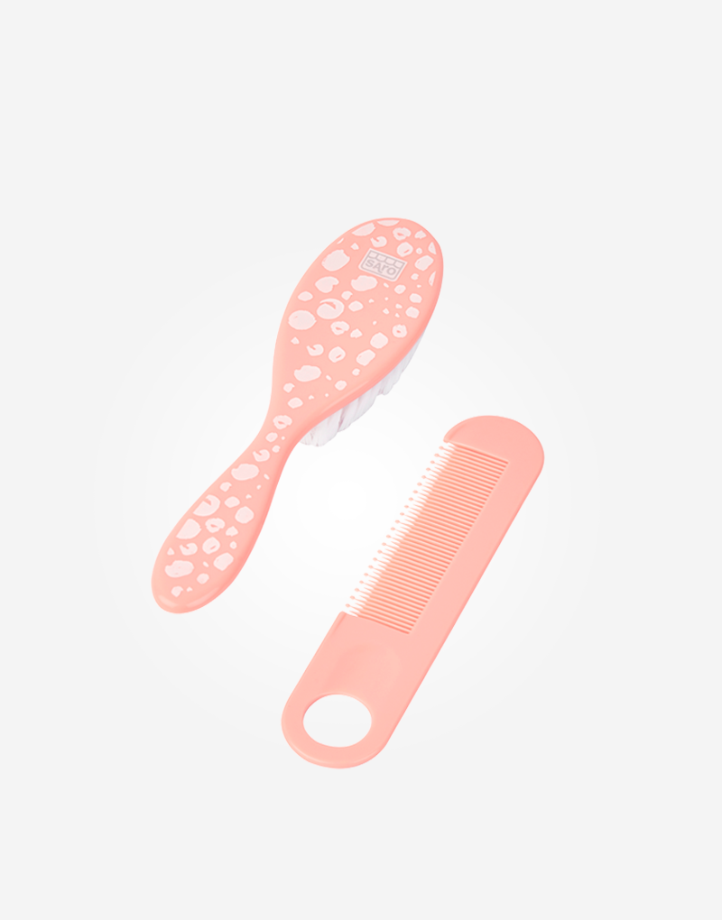 Un set de dos piezas, perfecto para el cuidado diario del bebé. Se compone de un cepillo de cerdas sintéticas y un peine con púas redondeadas para mayor seguridad del bebé.