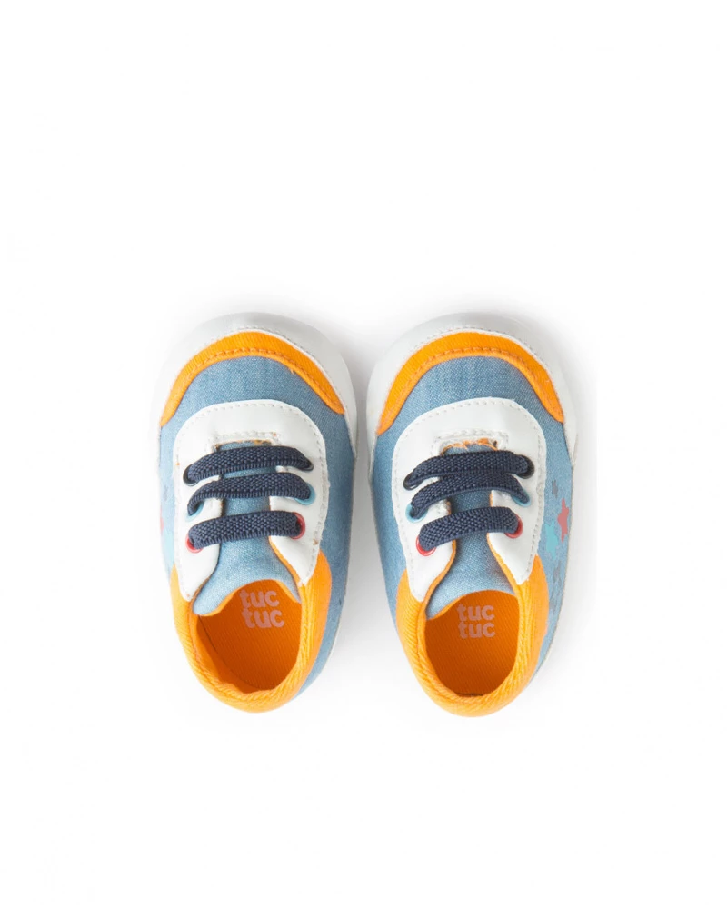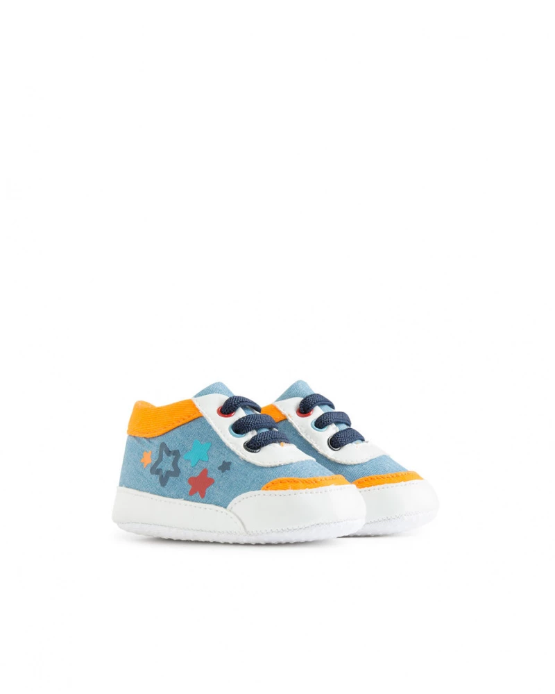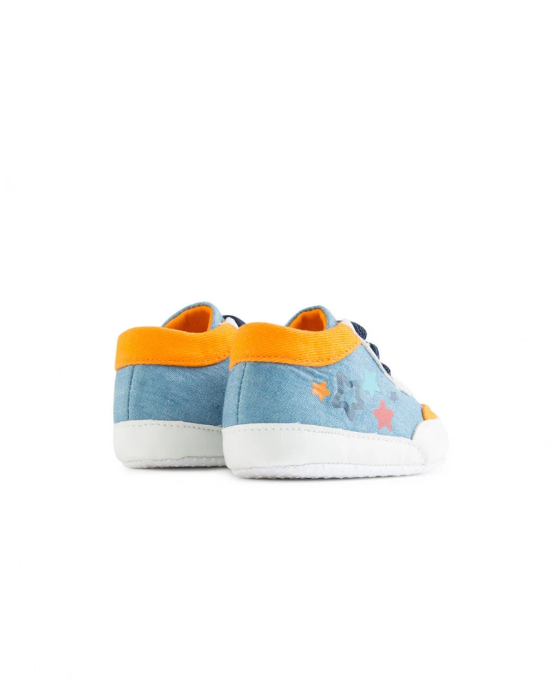 Deportivas denim de niño color azul con estampado de estrellas en el lateral.