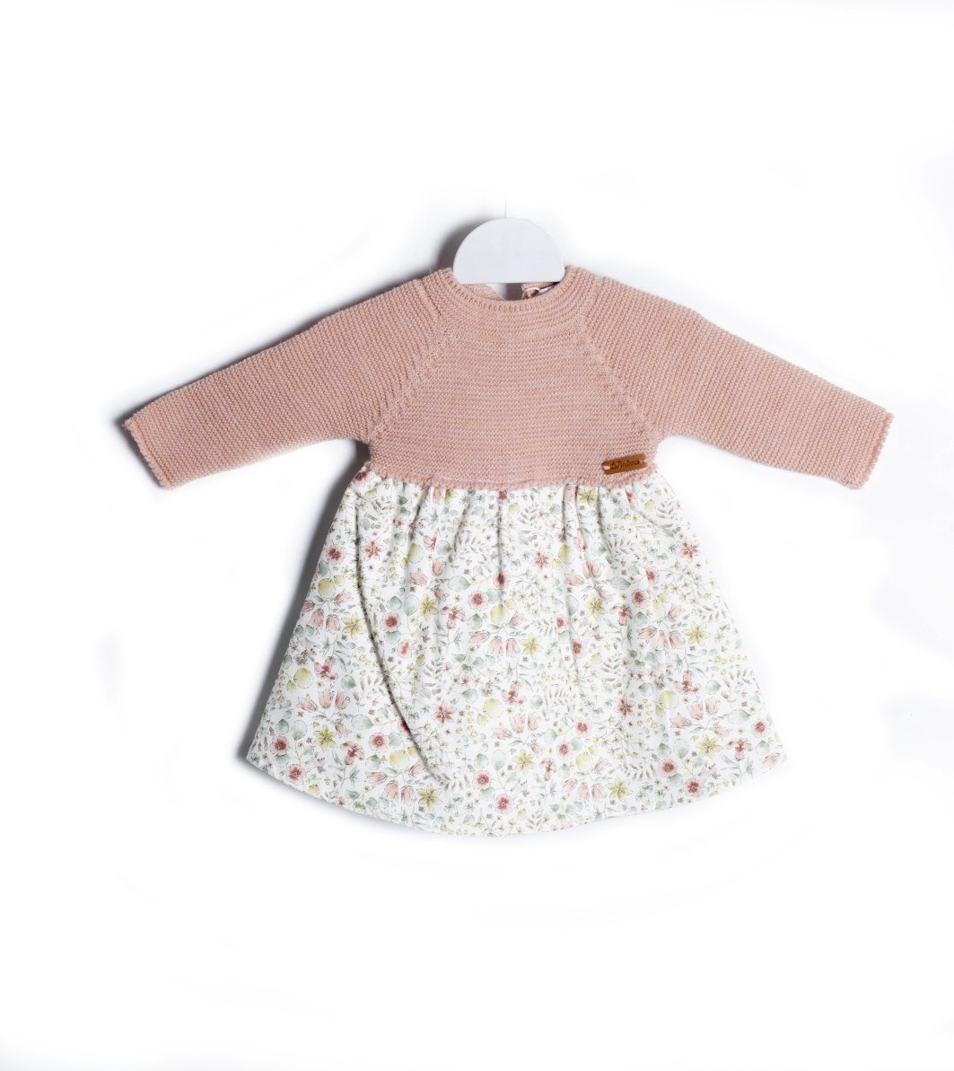 Vestido Punto y tela de flores. Fabricado en España.