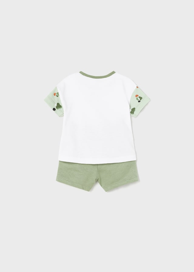 Prenda ECOFRIENDS, contiene algodón sostenible. Set de cuatro piezas para recién nacido formado por dos conjuntos de camiseta de manga corta y short combinables.