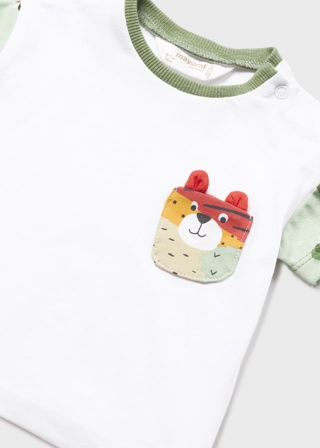 Camiseta de manga corta para recién nacido. Cuello redondo. Cierre con botones en el hombro.