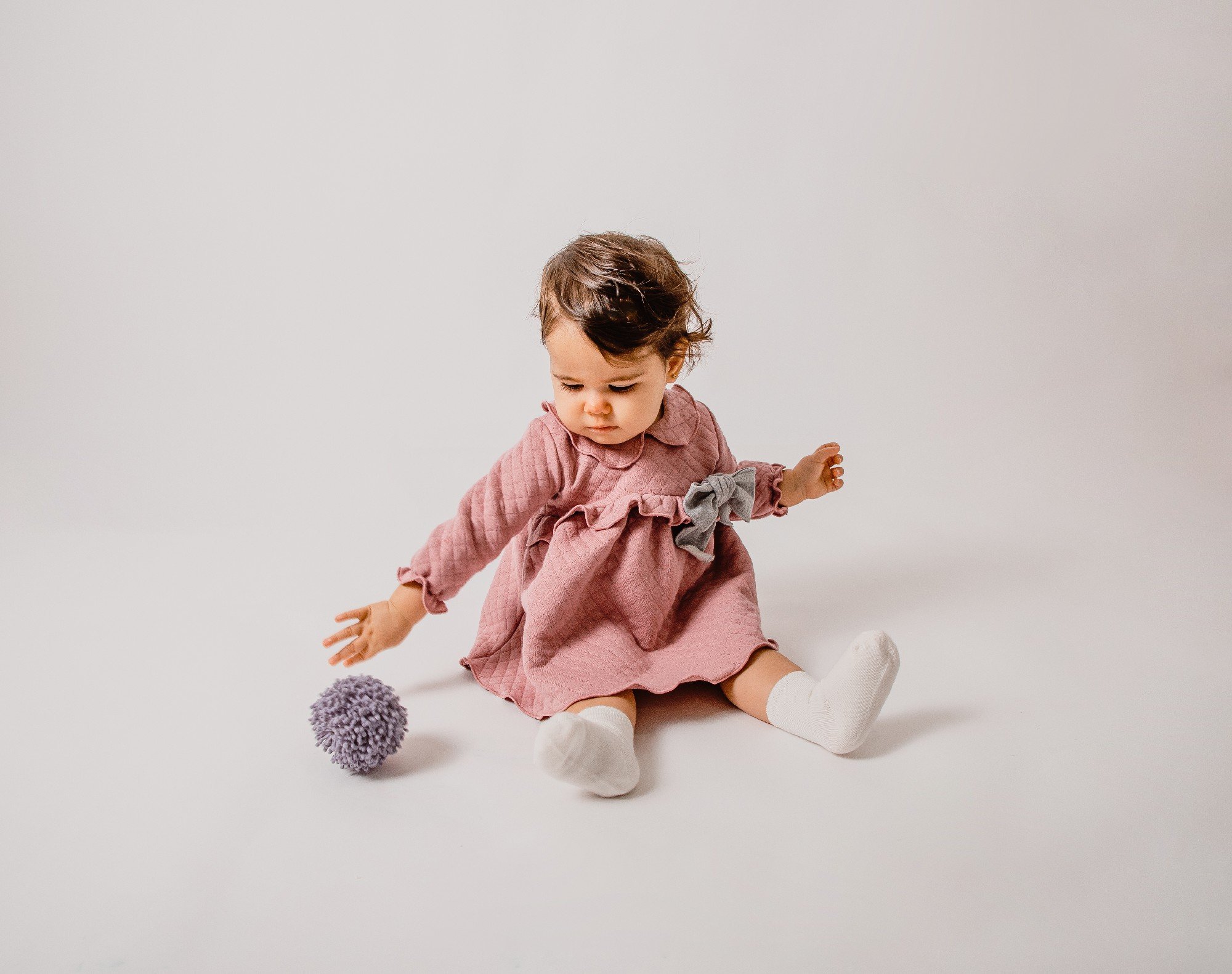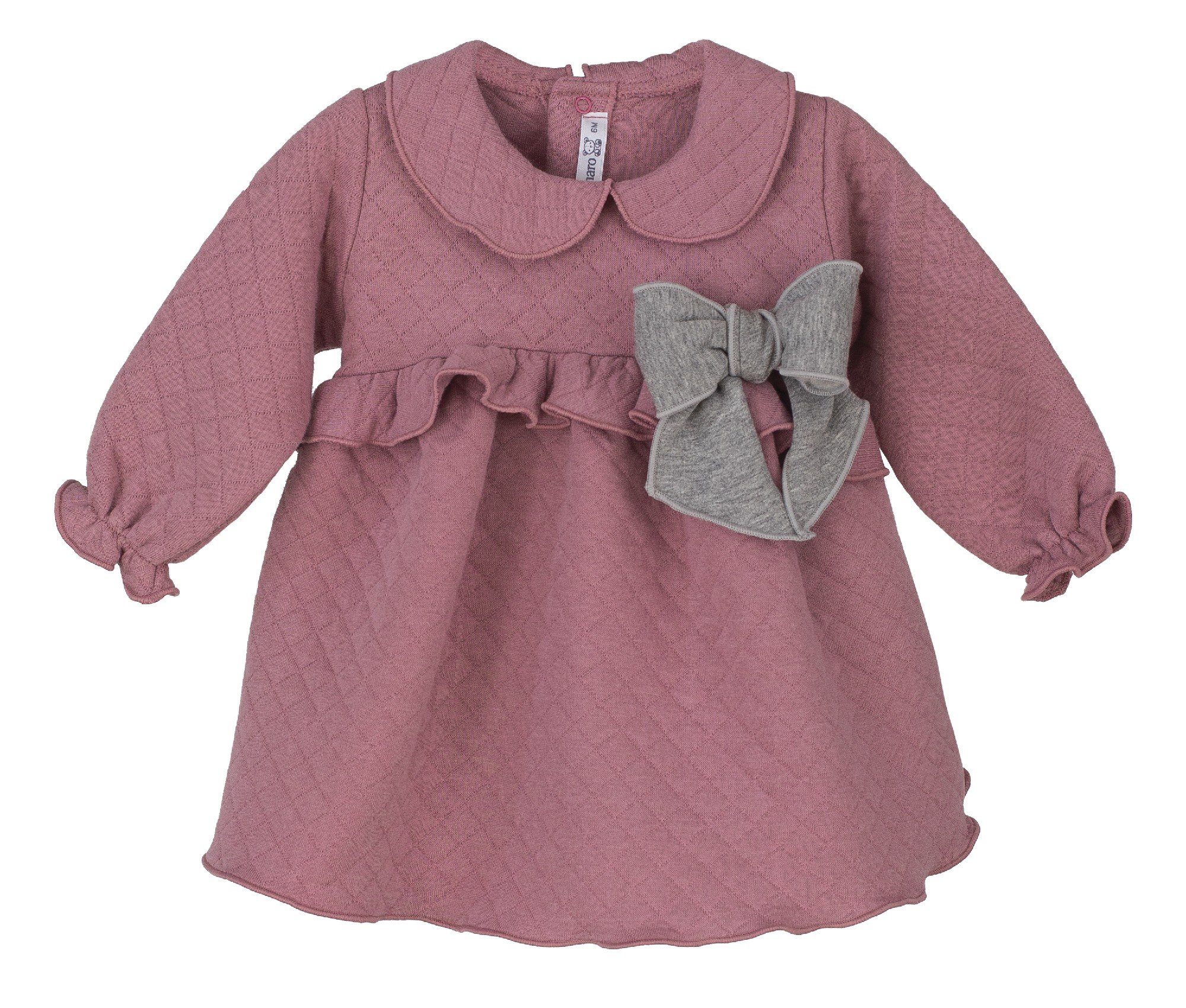Bonito vestido en color rosa con un lazo en tono gris. 80% algodón.