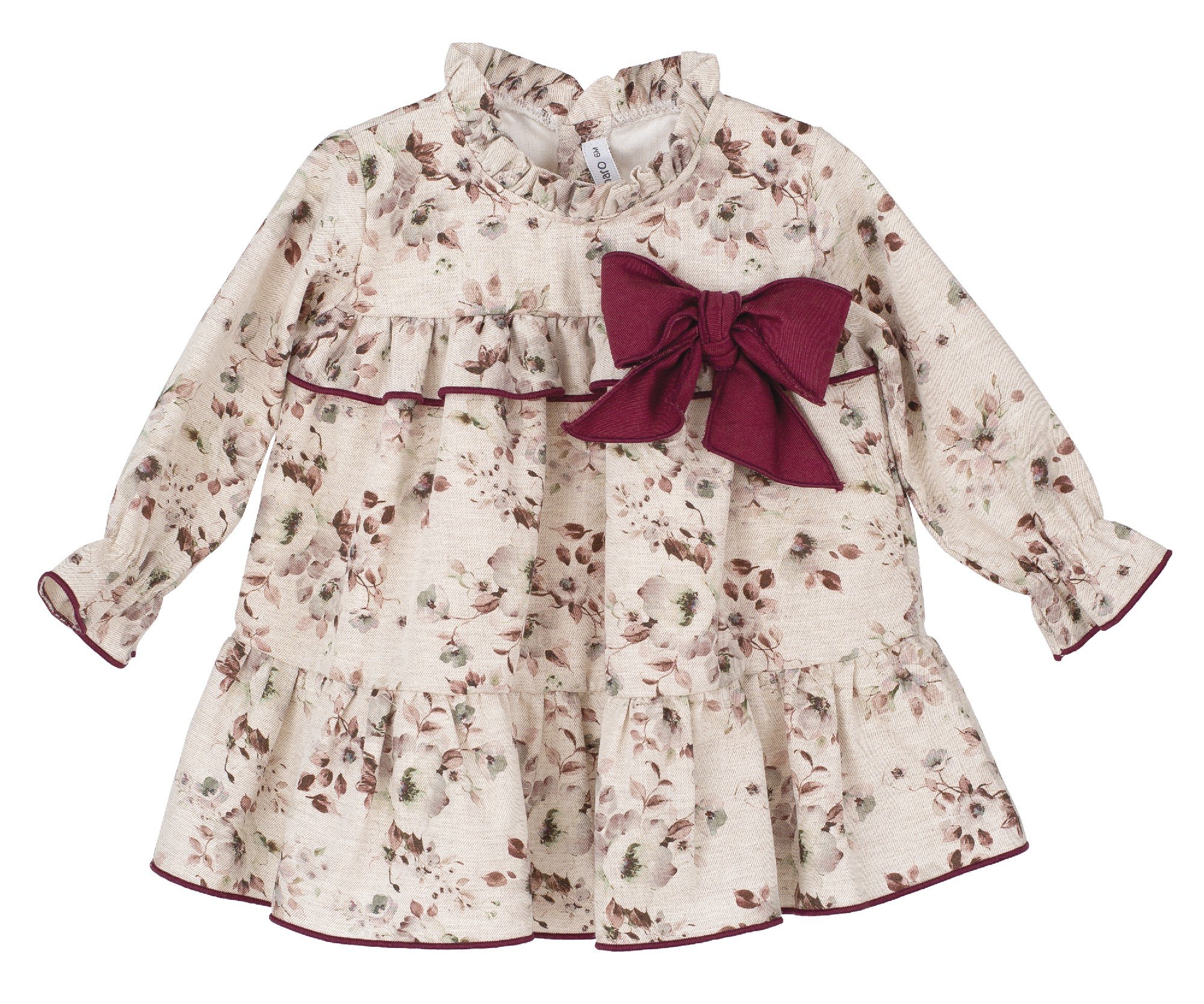 Bonito vestido estampado y con un lazo en color granate. 100% algodón.