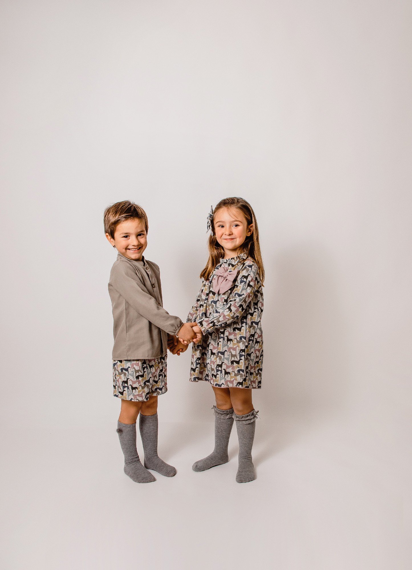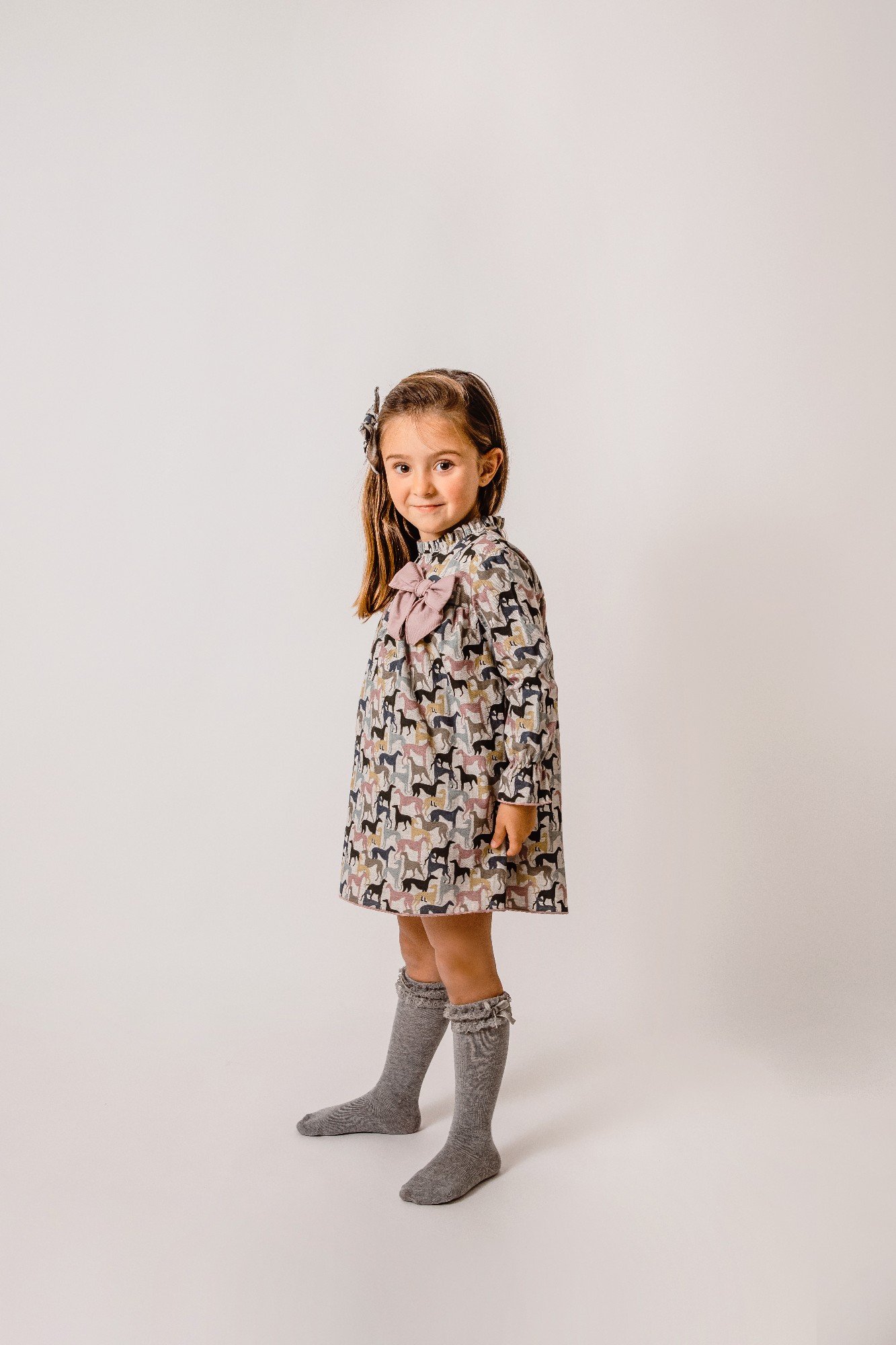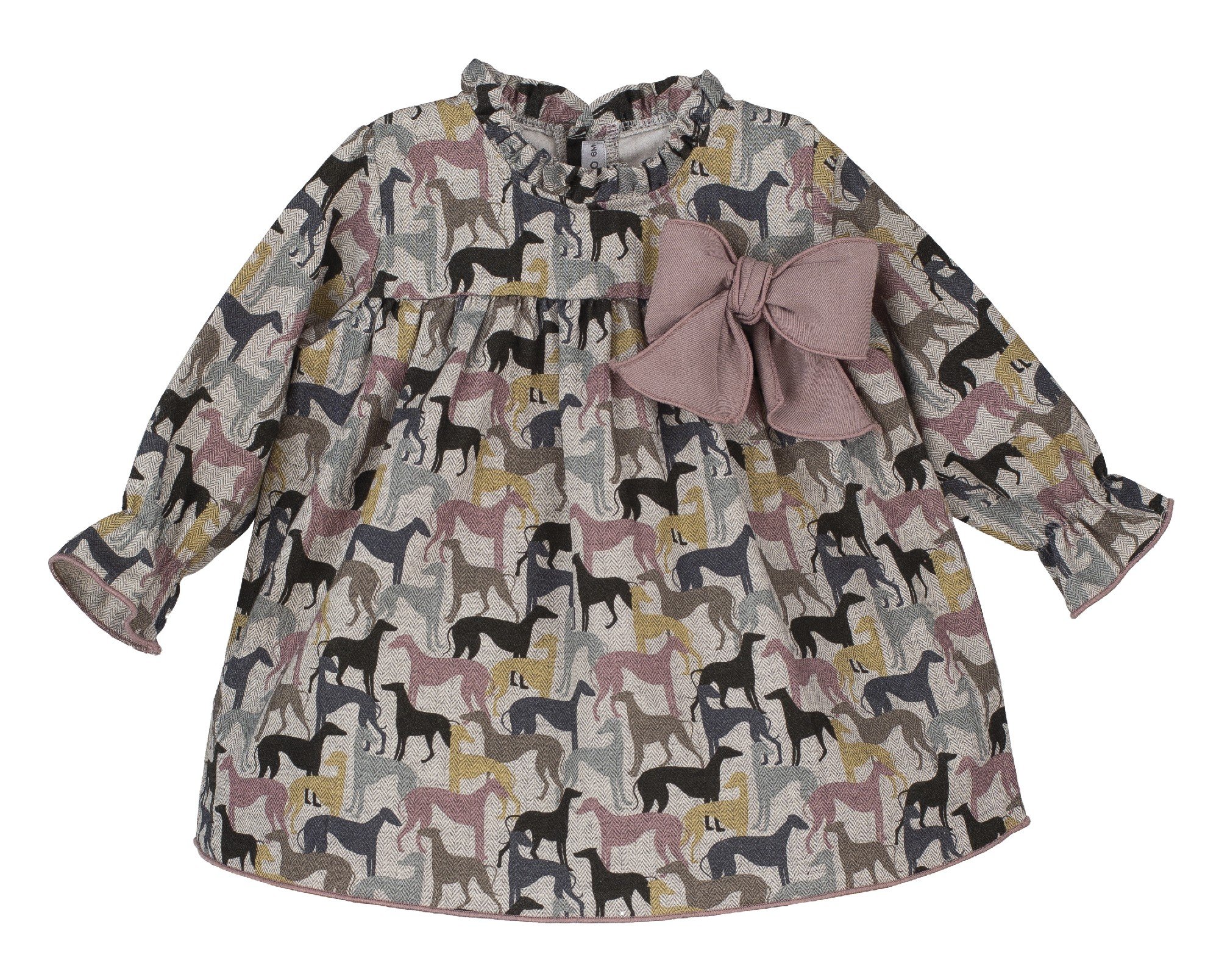 Bonito vestido estampado con un lazo a juego. 100% algodón.