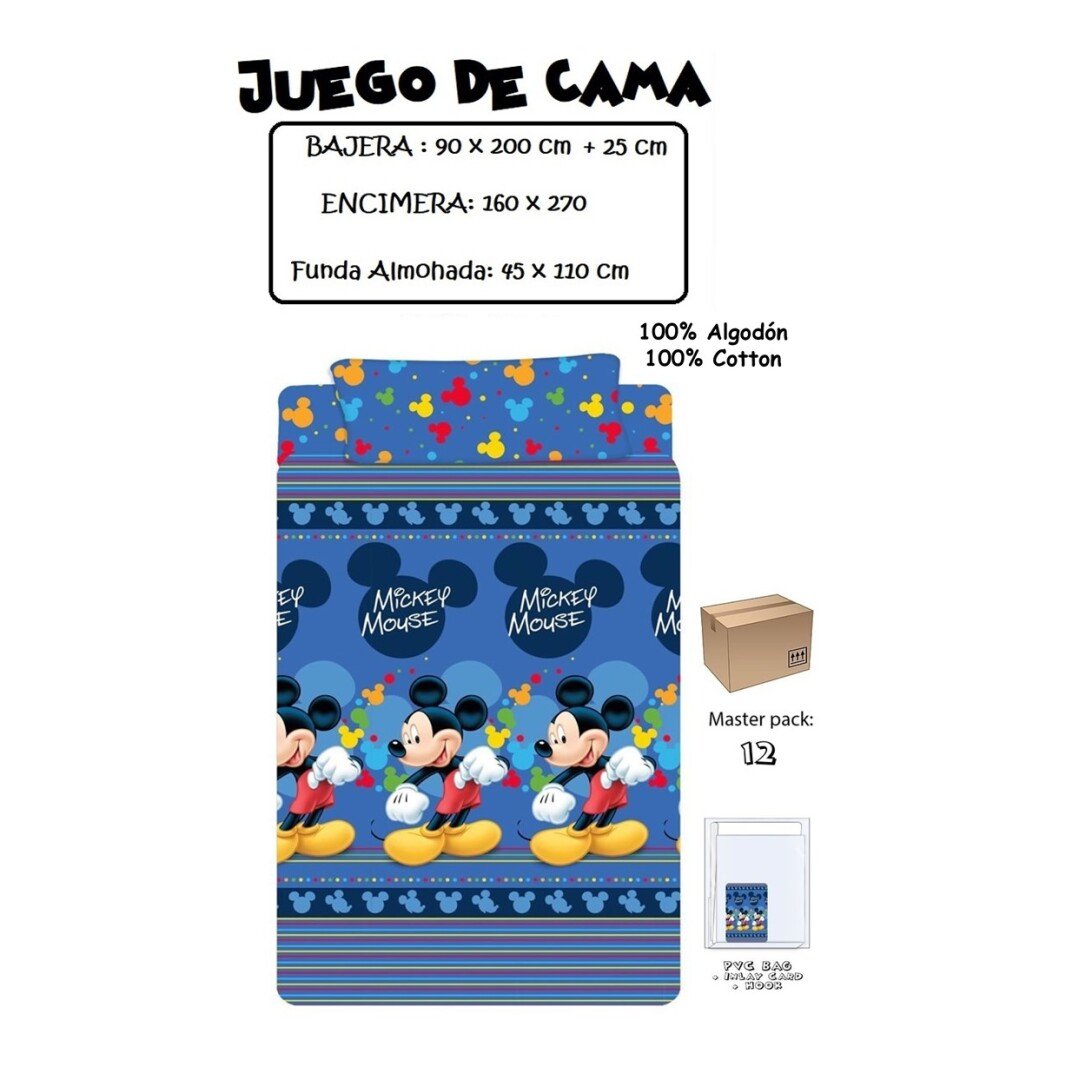 100% algodón. Bajera: 90×200+25cm. Encimera:160×270. Funda de almohada: 45x110cm.