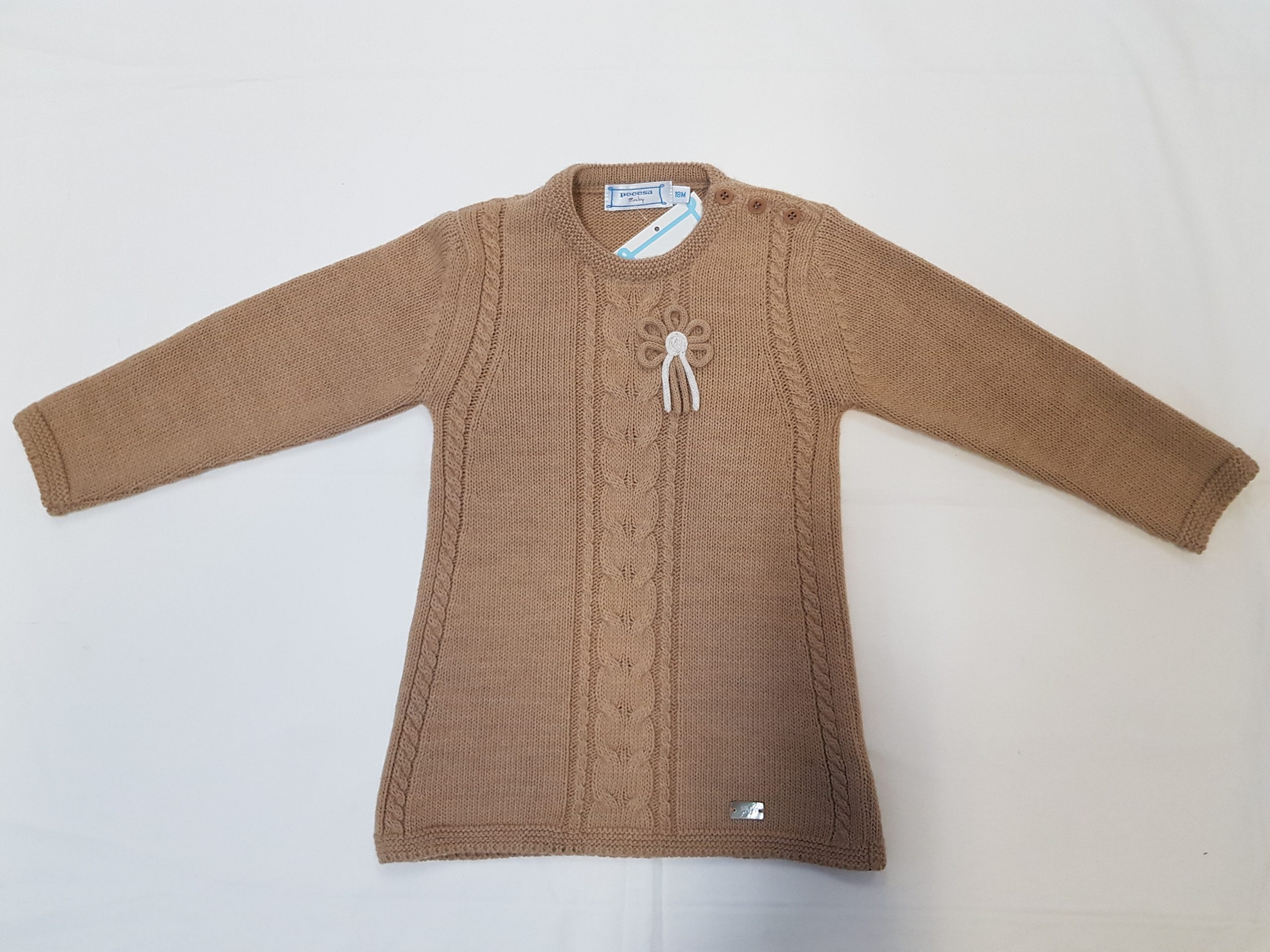Vestido de punto manga larga, con una flor.