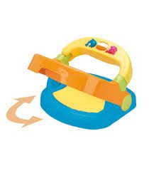 Asiento de baño que nos mantiene al niño en una posición segura durante el baño. Su material antideslizante nos evita que el niño se pueda resbalar. Giratorio para facilitarnos el acceso al niño durante el baño y abatible para que lo puedas utilizar, aunque el bebé no se mantenga sentado. Con juguetes en la barra frontal para entretener al bebé durante el baño.