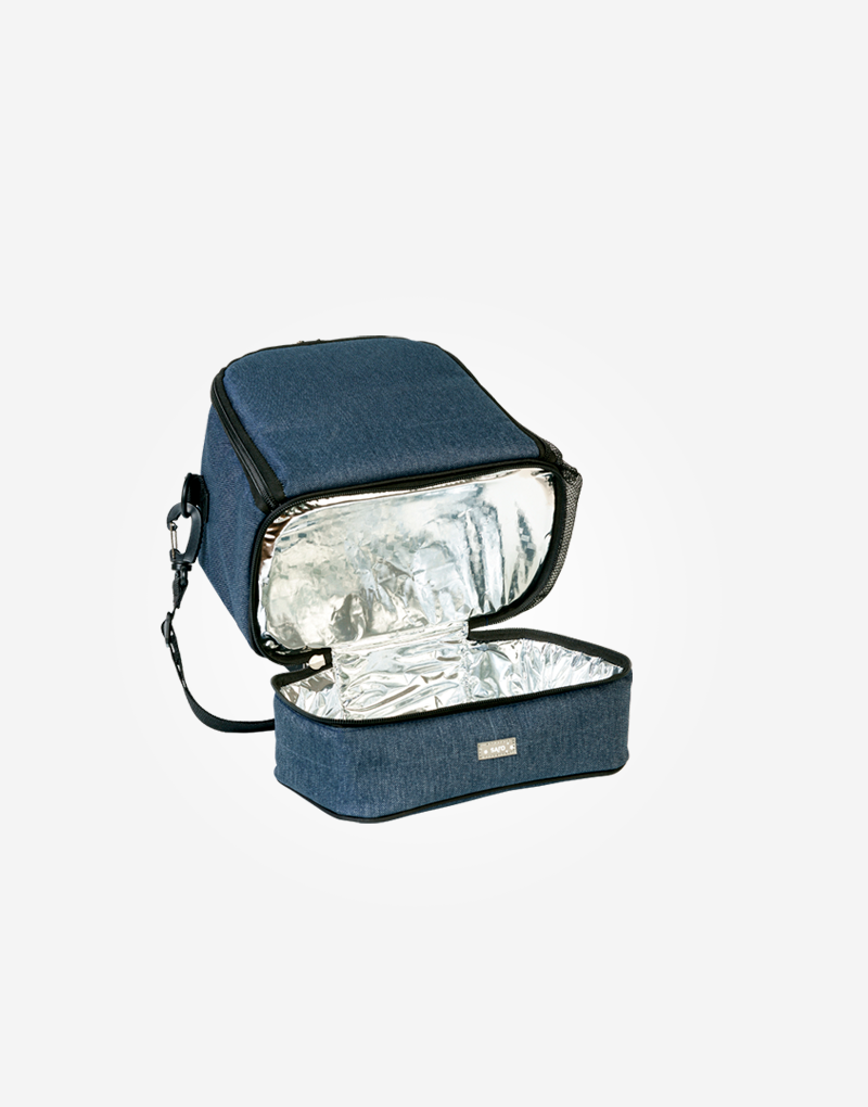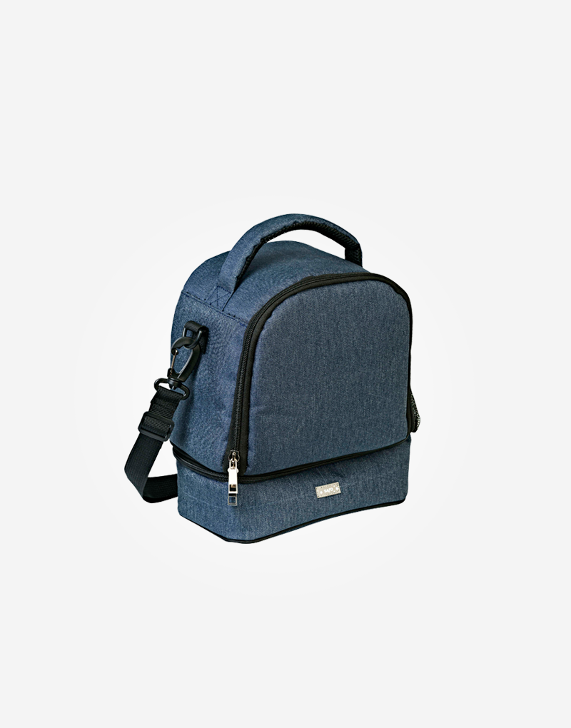 Dispone de dos compartimentos térmicos independientes, con cierre de cremallera, que permiten transportar al mismo tiempo alimentos fríos (manteniendo la temperatura 3-4 horas) y/o calientes (hasta 5-6 horas).