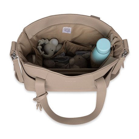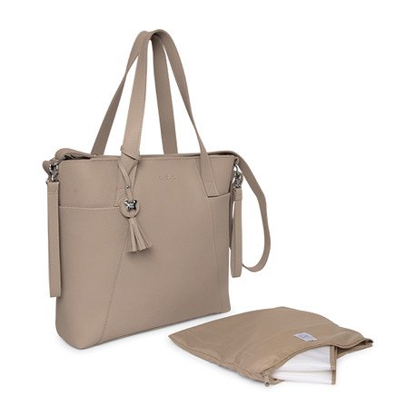 Bolso panera en tejido de polipiel, con gran capacidad, que incluye un cambiador para estar preparado en cualquier momento.