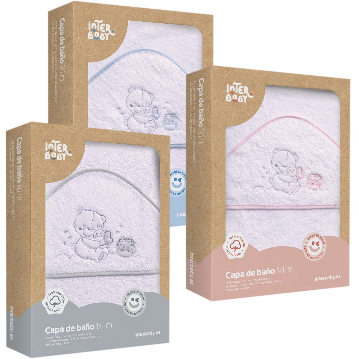 Capa de baño modelo “Honey bear” . embalaje de el producto en caja . medidas 100×100 aproximadamente . marca Interbaby.