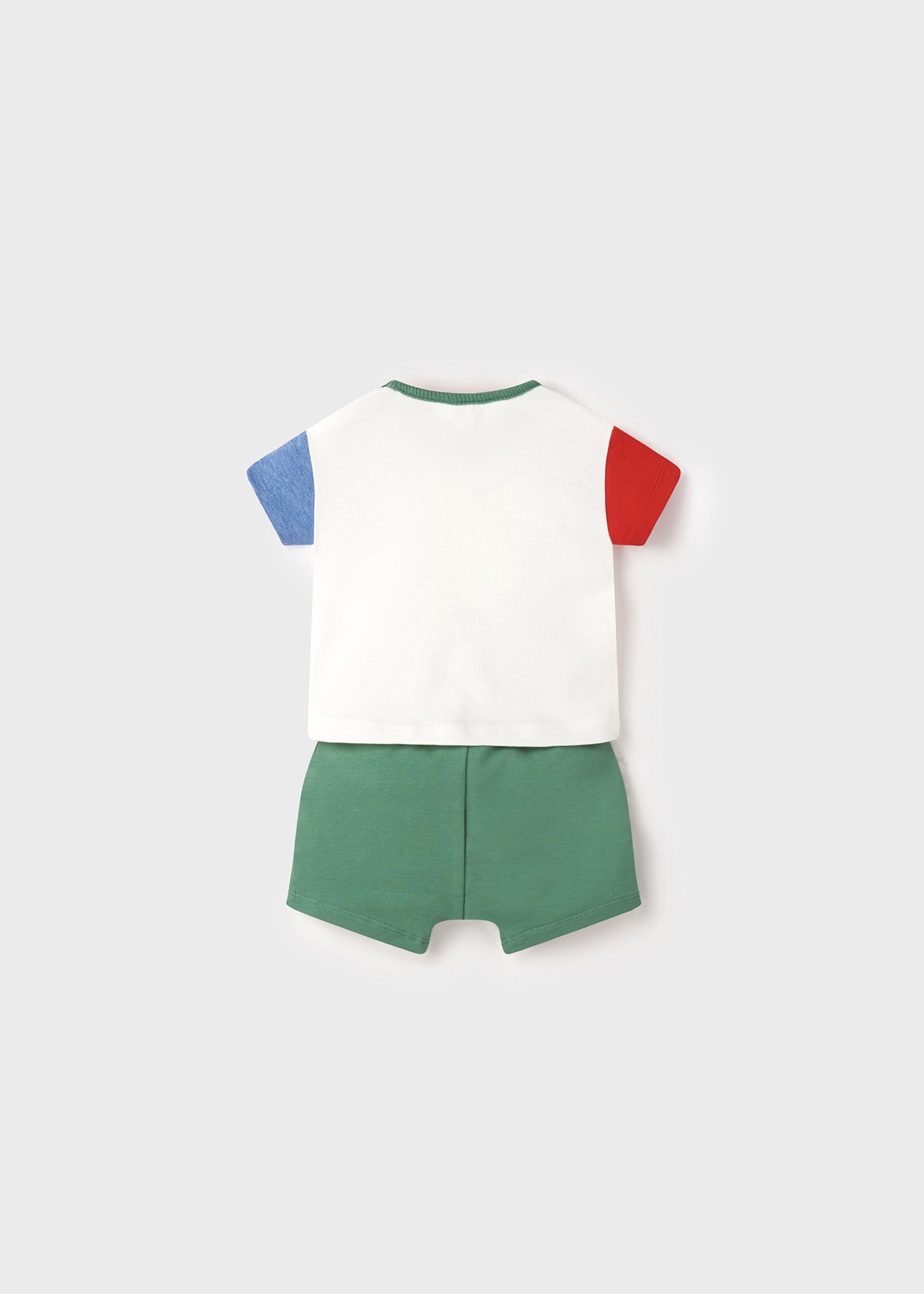 Prenda ECOFRIENDS 100% algodón orgánico. Set de cuatro piezas para recién nacido niño formado por dos conjuntos de camiseta de manga corta y short combinables.