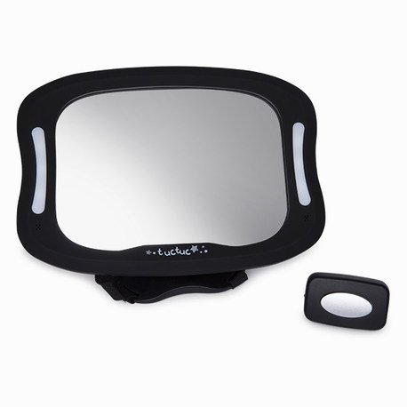 Espejo de coche con luz led TUC TUC con mando, fácil de colocar en el cabecero del asiento del coche para vigilar al bebé cuando va a contramarcha.