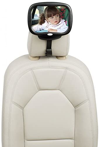 Práctico espejo rectangular para observar al bebé cuando va contramarcha. Dispone de mando a distancia para activar su luz.