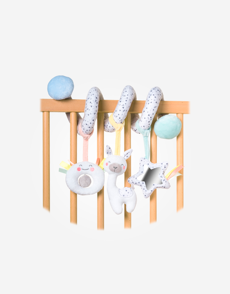 ¡Despierta la curiosidad de tu peque! Espiral de tela blandita y suave con sonajeros. Por su fácil sistema de sujeción se puede enrollar en la cuna, la sillita de paseo o en cualquier otro sitio, divirtiendo al bebé allí donde esté. Diferentes actividades para poner en marcha todos los sentidos del bebé.