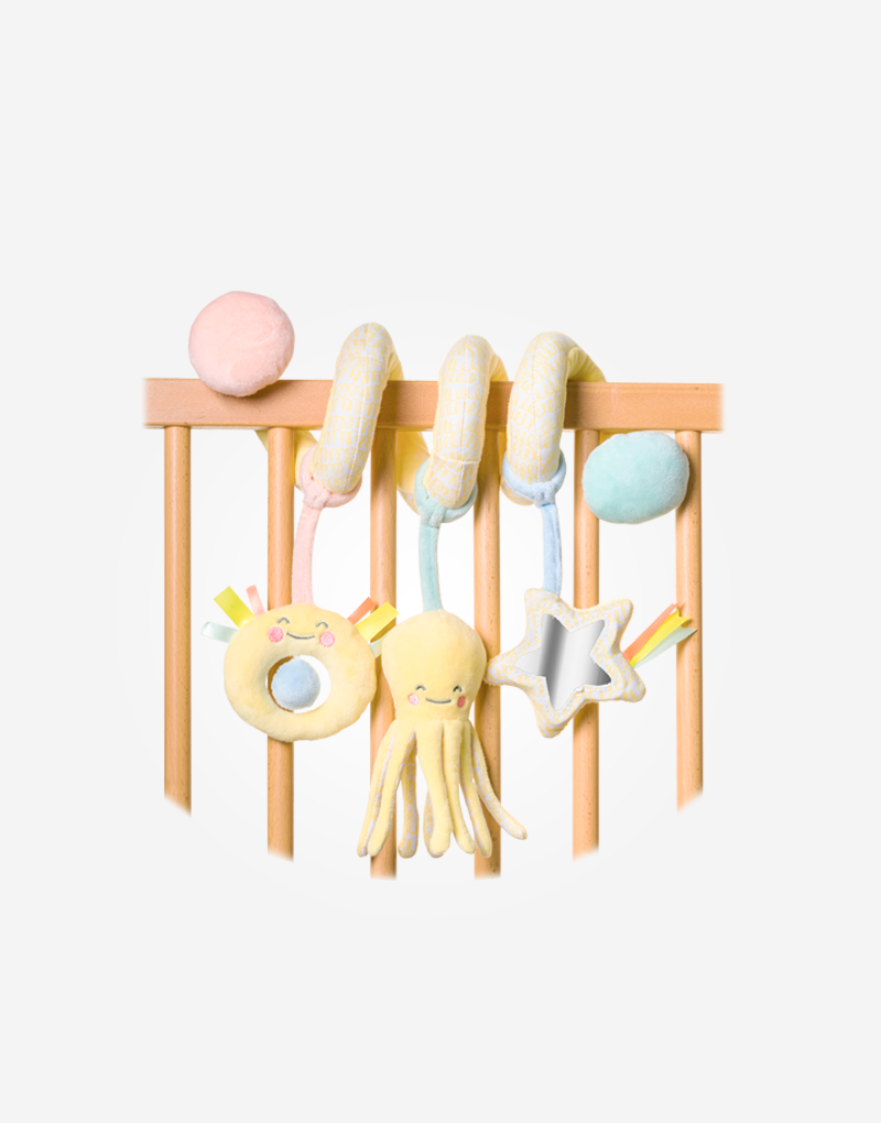 ¡Despierta la curiosidad de tu peque! Espiral de tela blandita y suave con sonajeros. Por su fácil sistema de sujeción se puede enrollar en la cuna, la sillita de paseo o en cualquier otro sitio, divirtiendo al bebé allí donde esté. Diferentes actividades para poner en marcha todos los sentidos del bebé.