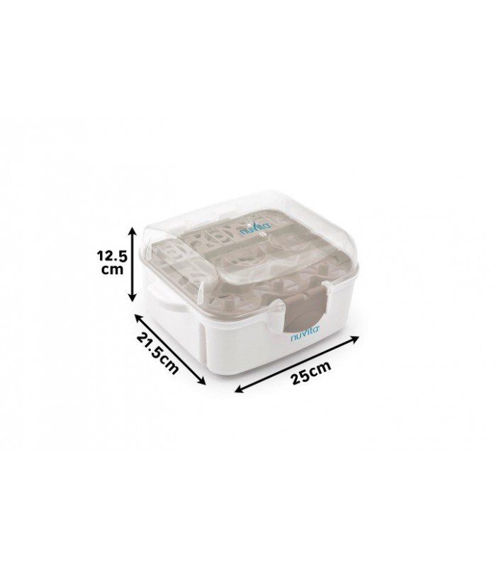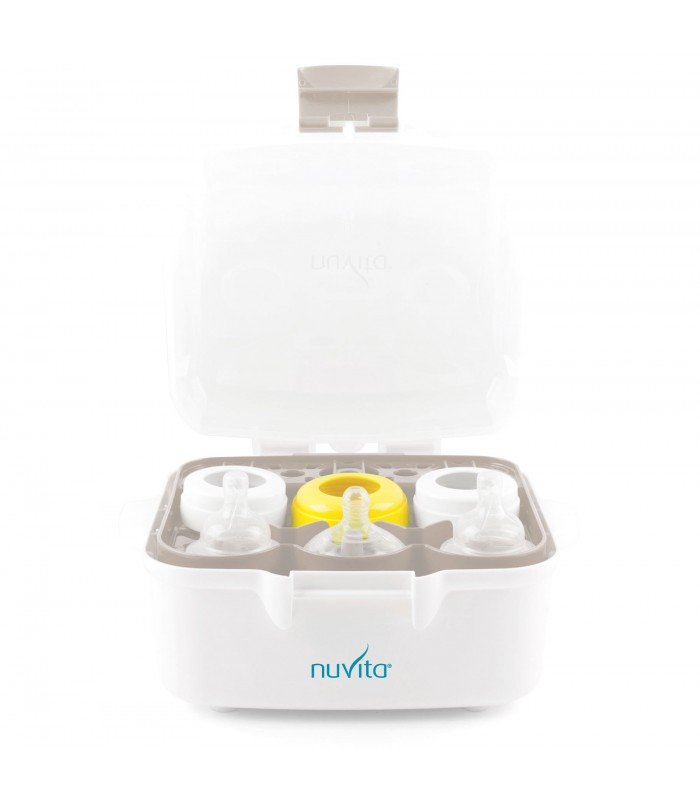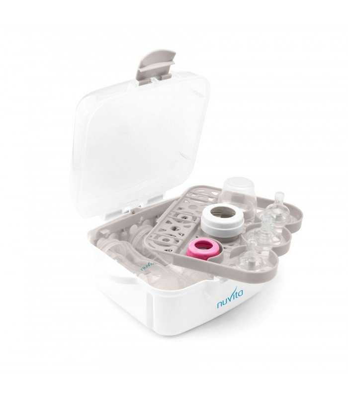 Esterilizador para microondas compacto y ligero, apto para casa y para viaje. Clip lateral para mayor seguridad durante su uso y después de extraerlo del microondas el contenido permanece estéril durante 24 horas si no se abre la tapa.