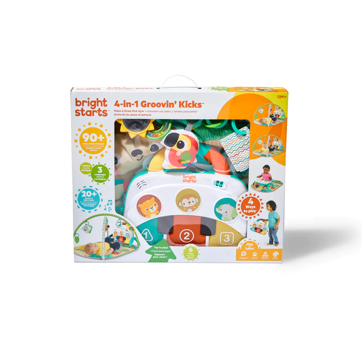 ¡Lleva las cosas a un nivel completamente nuevo en la sala de estar con el gimnasio 4 en 1 Groovin ‘Kicks Piano & Drum Kick de Bright Starts! Cada toque de los dedos de los pies del bebé iniciará más de 90 canciones, sonidos y dichos para jugar y descubrir en abundancia. Toca al ritmo de los pies del bebé con las teclas del piano y el kit de batería incluidos, y mira el espectáculo de luces aprobado para conciertos que suena. Con un dosel de barra de juguetes y 5 juguetes incluidos, hay mucho para jugar y explorar. ¡Separe el piano y el…