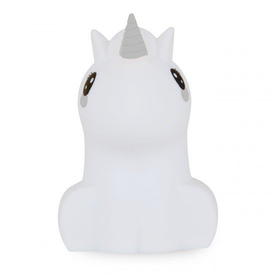 Graciosa lamparita de compañía en forma de simpático animalito. Ideal para hacer compañía a los más pequeños de la casa mientras duermen. La lámpara emite una luz ambiental que cambia progresivamente con una gama de colores distintos. Se puede programar para que cambie de color al tocarlo. El modelo unicornio tiene altavoz y se puede escuchar música a través del mismo por Bluetooth. Puedes encender o apagar la lámpara, fijar el color o cambiarlo, tocando sobre la lámpara o con el mando a distancia.