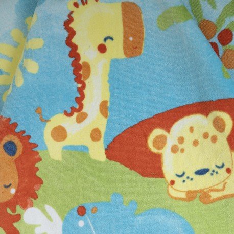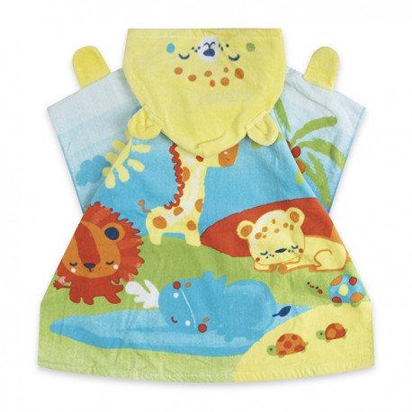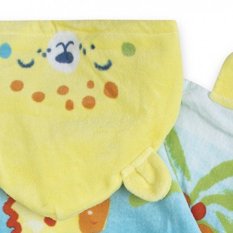 Poncho de baño de bebé niño de algodón en amarillo con capucha y estampado de animaels en la selva de la colección Hi! Sunshine