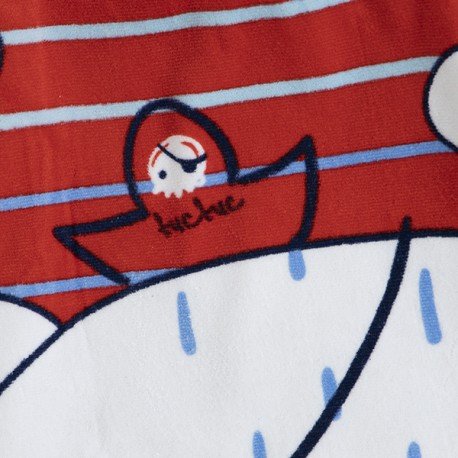 Poncho de baño niño de algodón rojo con capucha y dibujo de pirata de la colección Little Pirates
