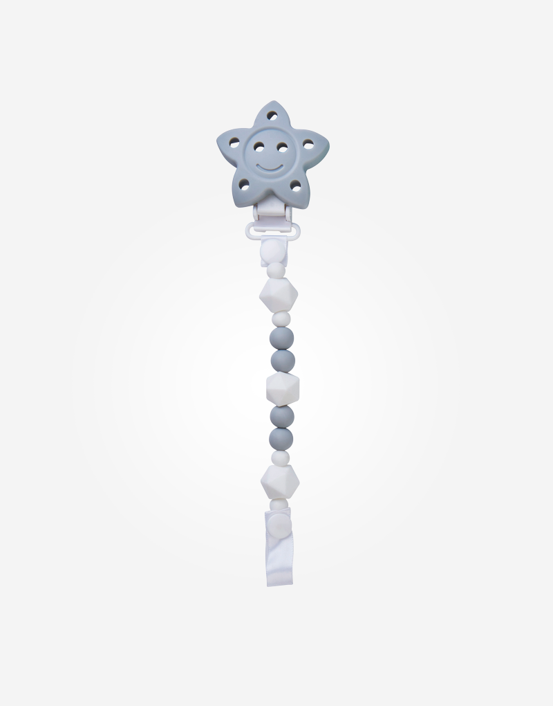 Con esta cadenita de silicona, el chupete o mordedor favorito de tu bebé estará siempre a su lado. Cuenta con un práctico sistema para engancharlo a la ropa: así no lo perderéis de vista y evitaréis que se caiga. Fabricado en silicona alimentaria, un material eco-friendly, antibacteriano y resistente. Tu peque lo pasará genial jugando con las bolitas y texturas, y además… ¡Es 100% mordisqueable!