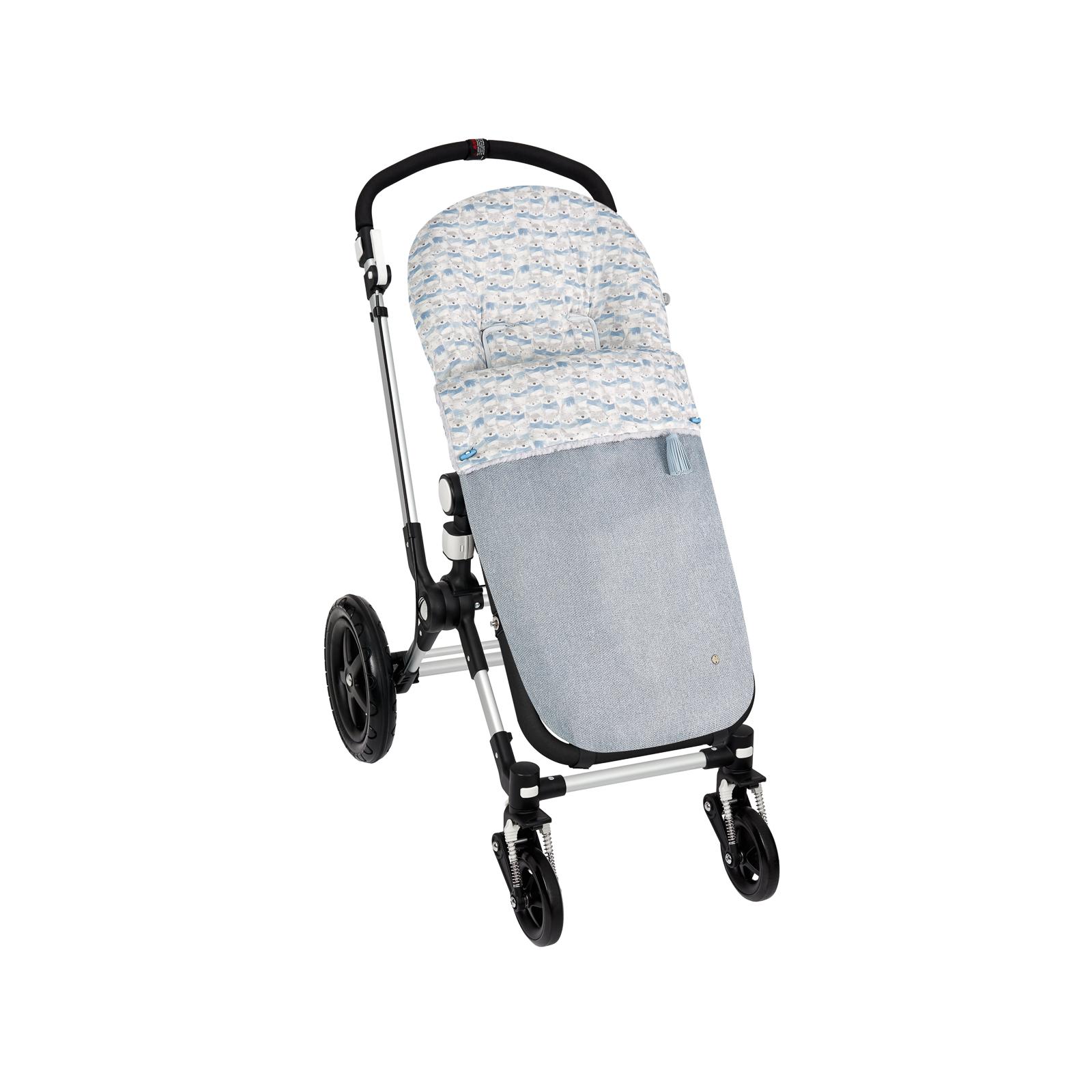 Saco universal para sillas bebé, confeccionado en tejido cheviot exterior combinado con estampado de animalitos. Embozo reversible con pelo. Relleno extraíble. Colchoneta interior de tela.