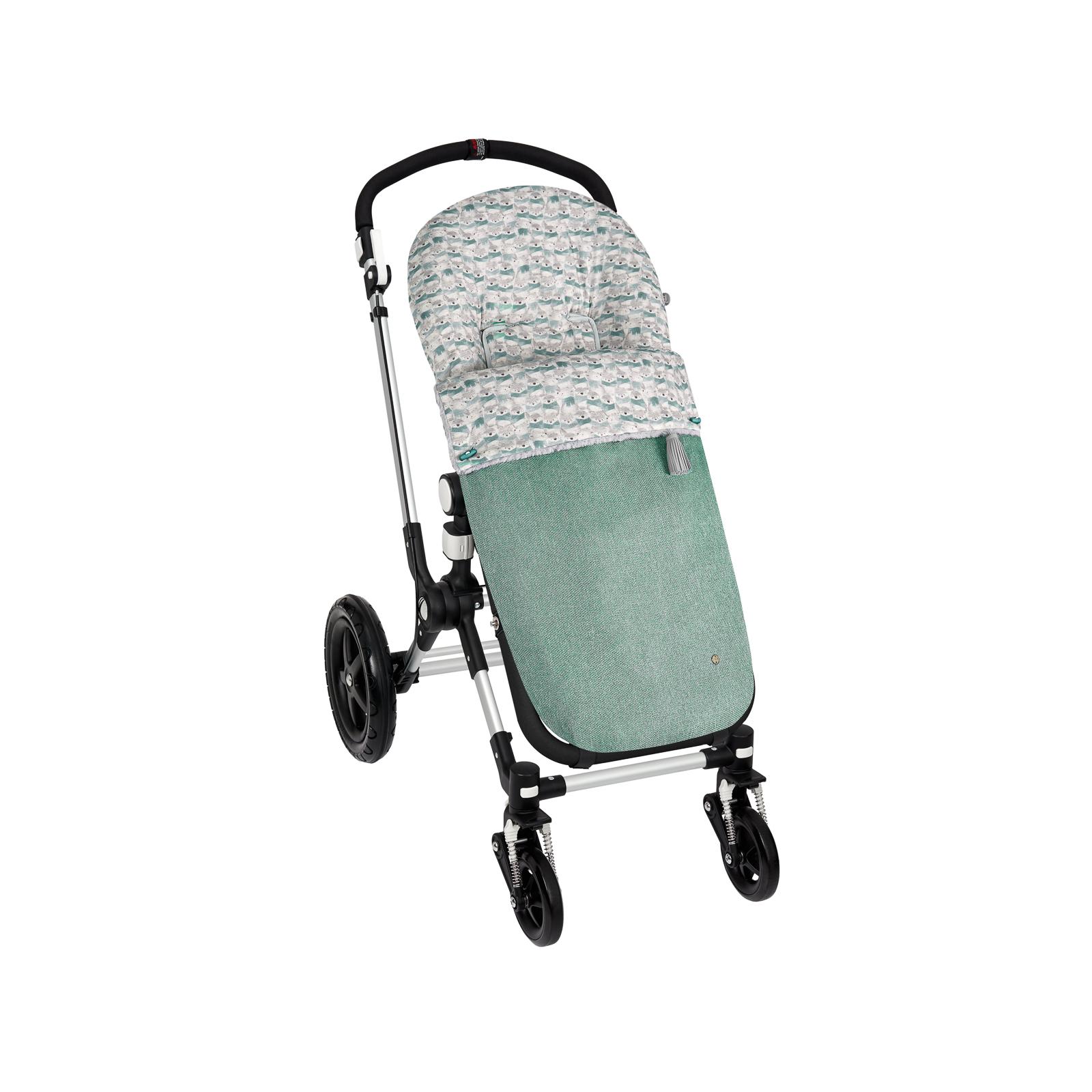 Saco universal para sillas bebé, confeccionado en tejido cheviot exterior combinado con estampado de animalitos. Embozo reversible con pelo. Relleno extraíble. Colchoneta interior de tela.