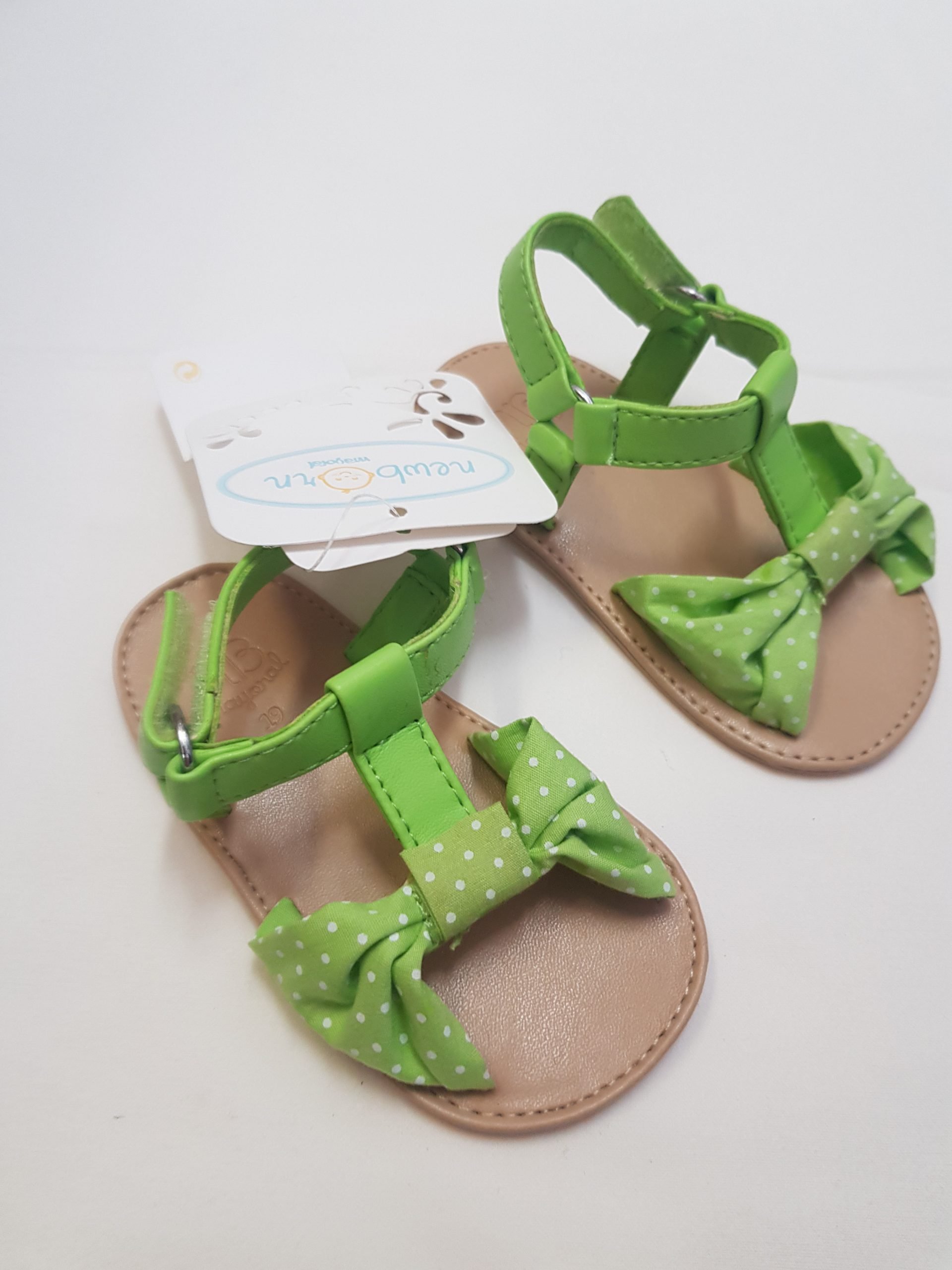 BONITAS SANDALIAS DE COLOR VERDE, CON LAZO EN COLOR VERDE Y LUNARES.