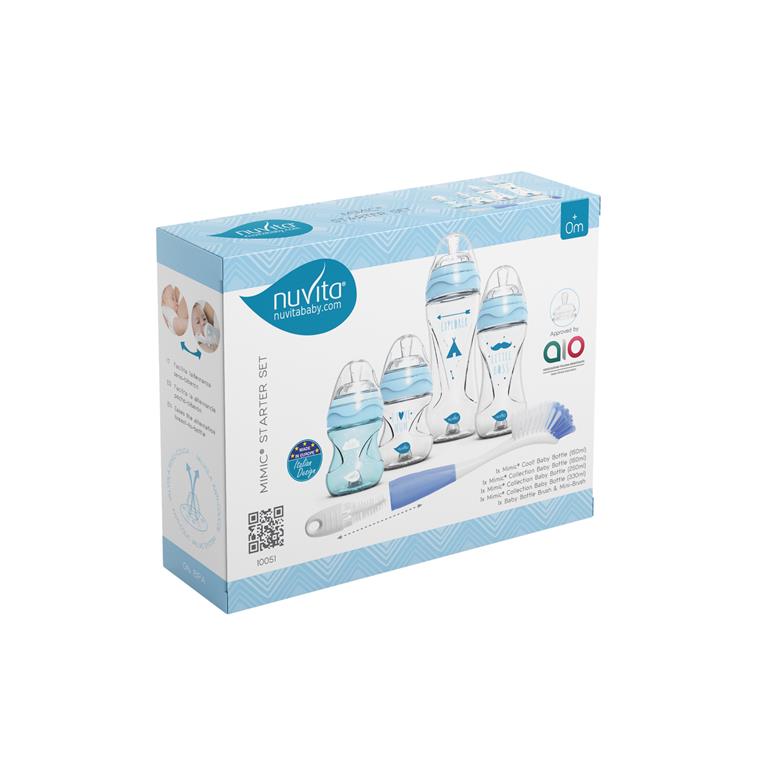 Set de regalo 4 biberones Mimic® + cepillo para biberón y mini-cepillo para tetinas.