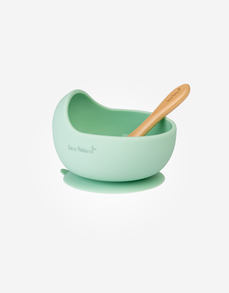 - Un cuenco de silicona con una práctica ventosa en su base que lo fija a la mesa. ¡A prueba de bebés rebeldes!