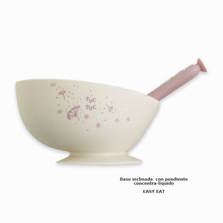 - El bol con una inclinación especial para facilitar que el niño recoja la sopa o la crema sin tener que inclinarlo