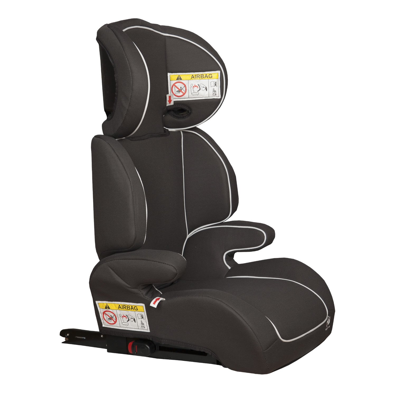Se coloca con facilidad en los asientos traseros del automóvil, usando directamente el cinturón de seguridad del coche en el niño. Materiales de la Silla elevador Bali: está fabricado con plástico atóxico lavable y el tejido es 100% poliéster (vestidura de color gris)