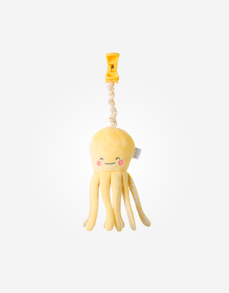 Es perfecto para colocarlo en la capota del cochecito, o en la sillita del grupo 0, con un sencillo sistema de ajuste con pinza.