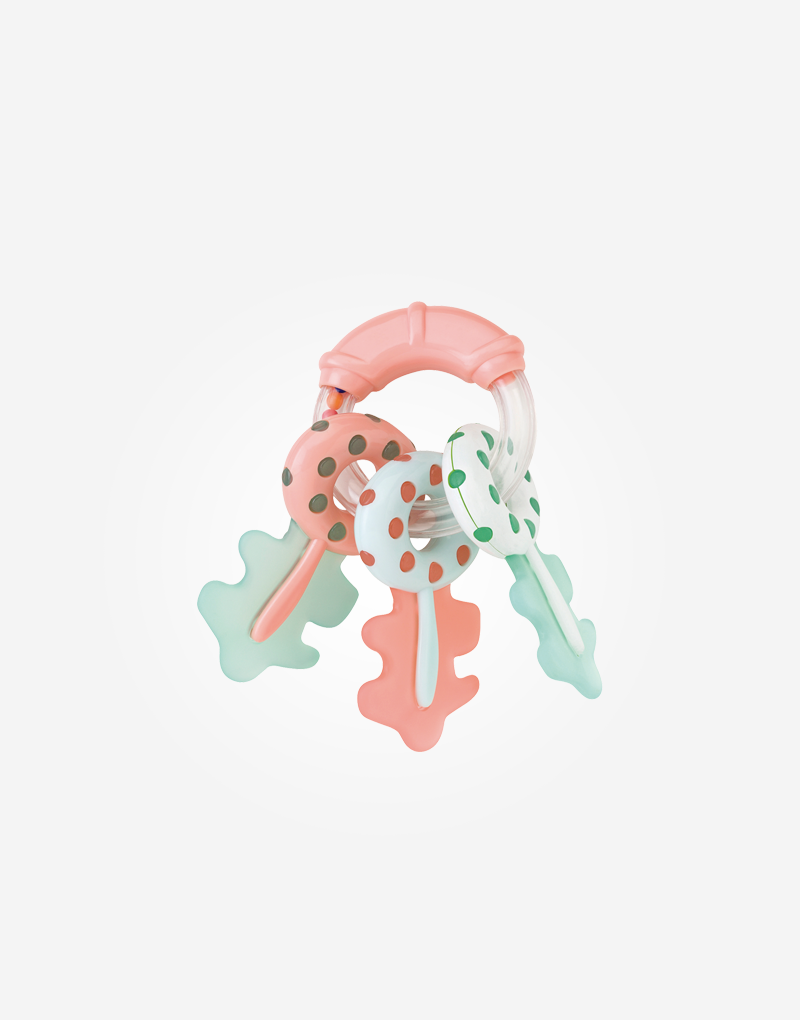Sonajero «Llaves» con mordedor salmón/menta Saro