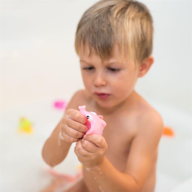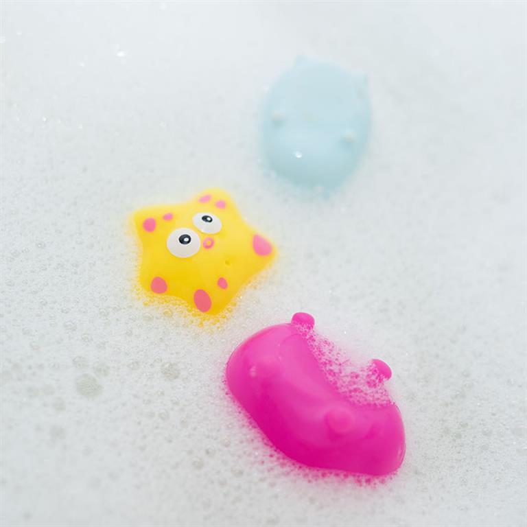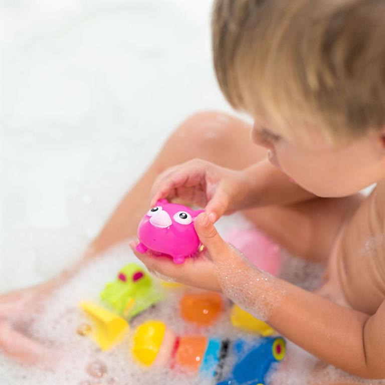 ¡Diversión en el baño! Gracias a sus alegres colores y formas redondeadas, el bebé desarrollará sus habilidades cognitivas a la vez que se divierte.